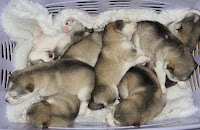 With Gwen gone for a short week to the US for her work, Gijs took time off to spend more time with the puppies.Just before Gwen left, we started weaning them, and with 8 malamute puppies, this goes like a breeze, if not for the mess...
